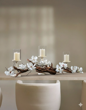 "The centerpiece was stunning! The driftwood, magnolias, and candles added an elegant touch to my dinner party. My guests were amazed, and it made the table look so sophisticated. Perfect for any special occasion!"