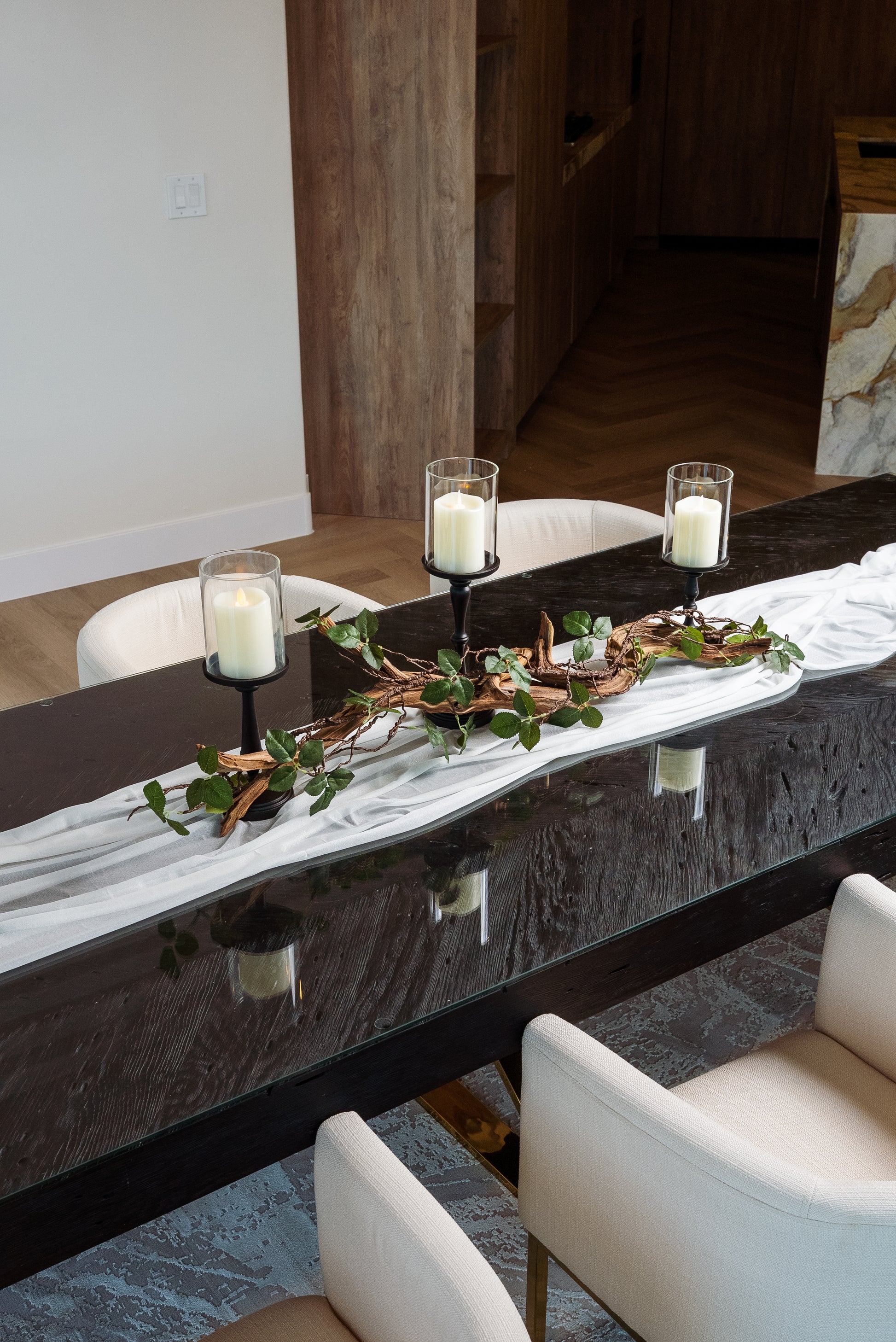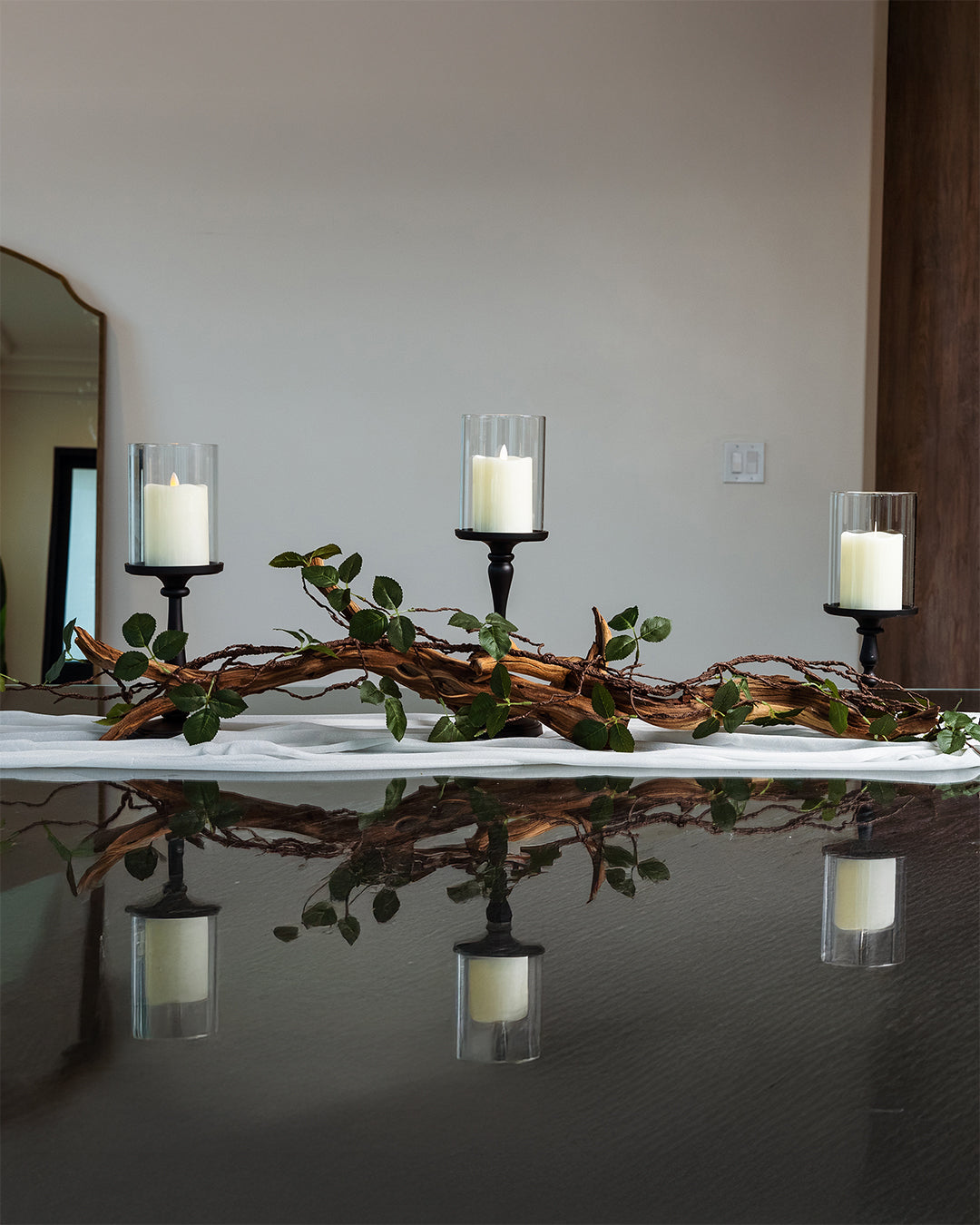"Perfect for our anniversary dinner! The driftwood and magnolias added a rustic charm, while the candles made it feel romantic and luxurious. My guests were impressed!"