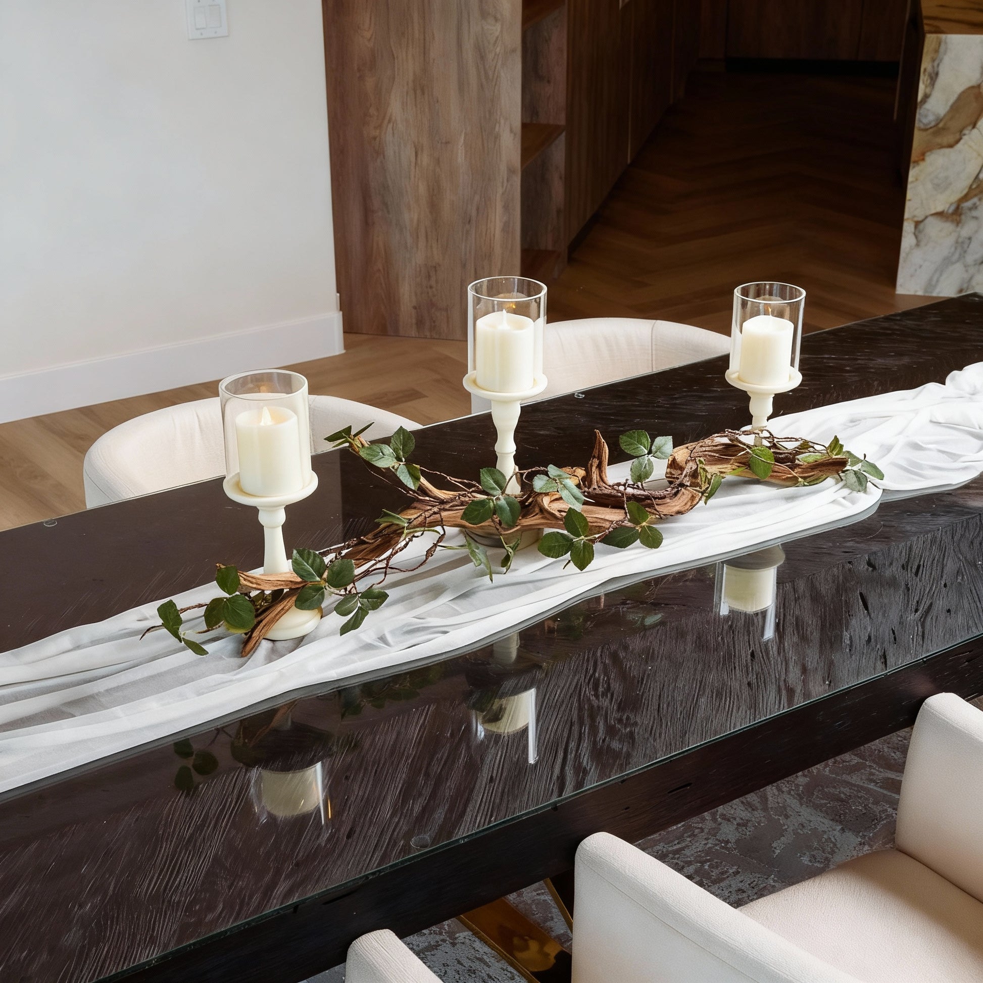 "Perfect for our anniversary dinner! The driftwood and magnolias added a rustic charm, while the candles made it feel romantic and luxurious. My guests were impressed!"