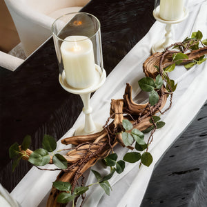 "The centerpiece was stunning! The driftwood, magnolias, and candles added an elegant touch to my dinner party. My guests were amazed, and it made the table look so sophisticated. Perfect for any special occasion!"